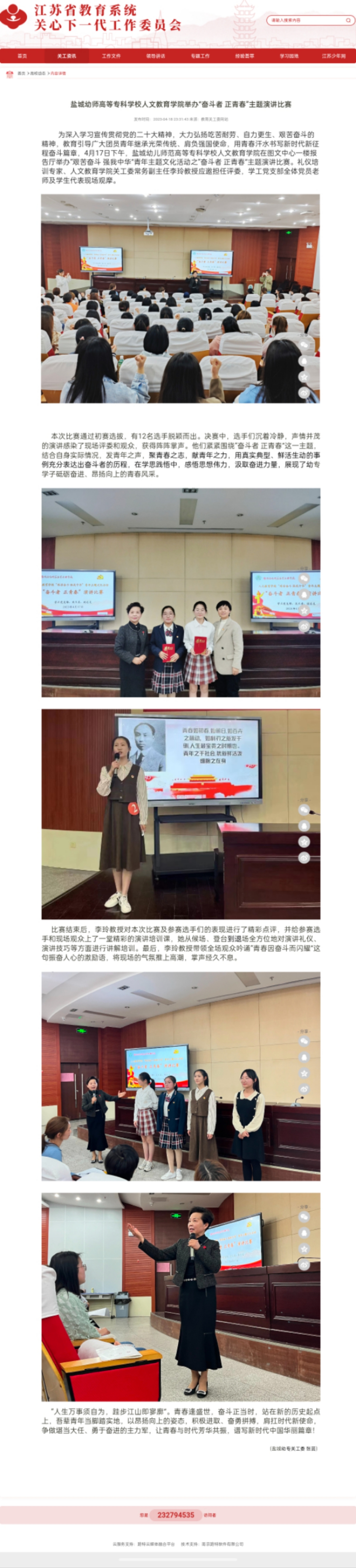 省教育关工委网站报道我校人文教育学院举办“奋斗者 正青春”主题演讲比赛