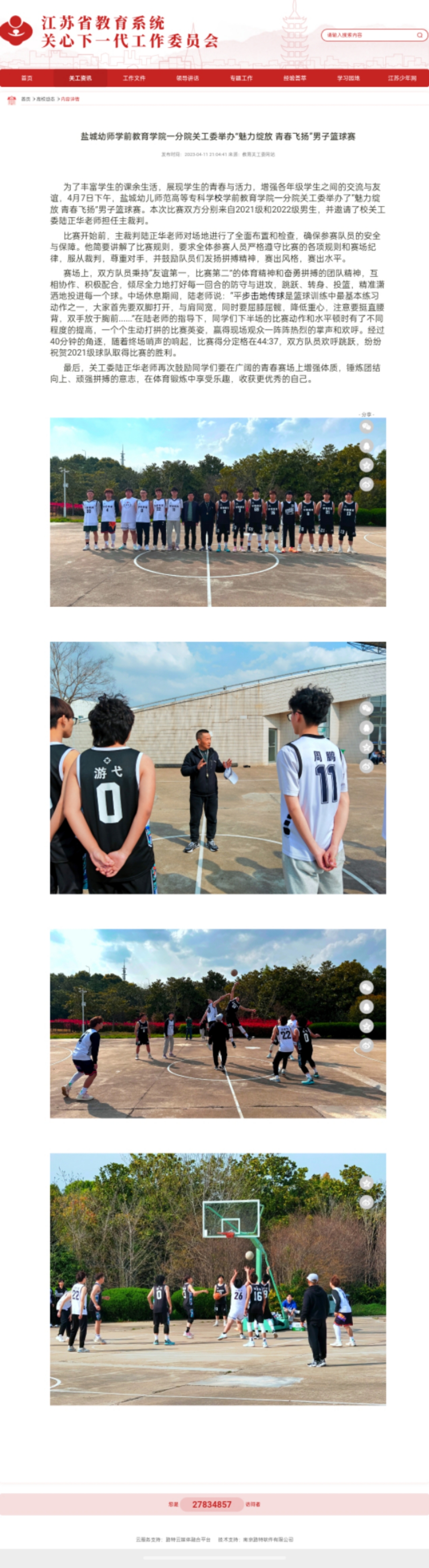 省教育关工委网站报道我校学前教育学院一分院关工委举办“魅力绽放 青春飞扬”男子篮球赛
