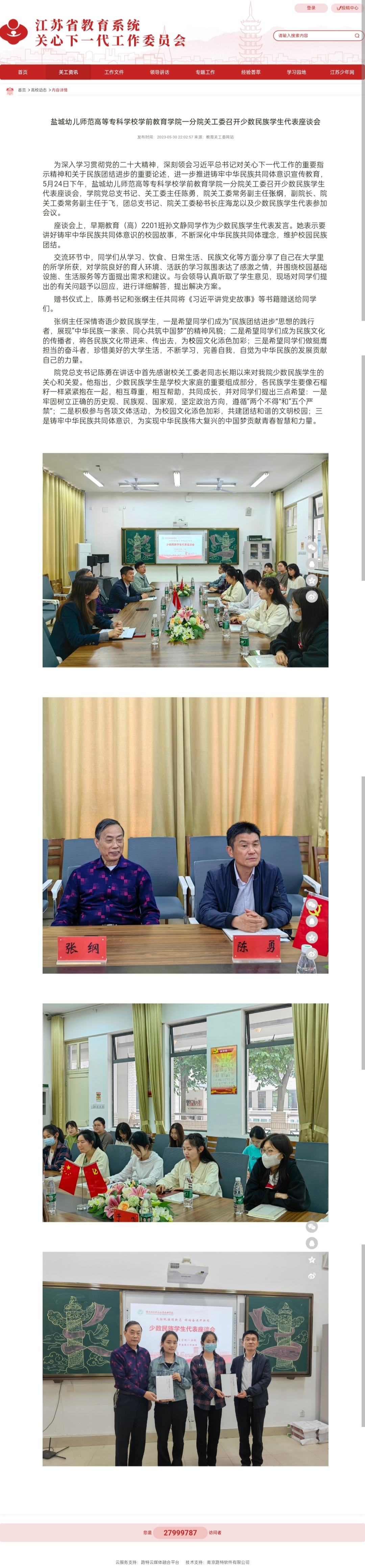 省教育关工委网站报道我校学前教育学院一分院关工委召开少数民族学生代表座谈会