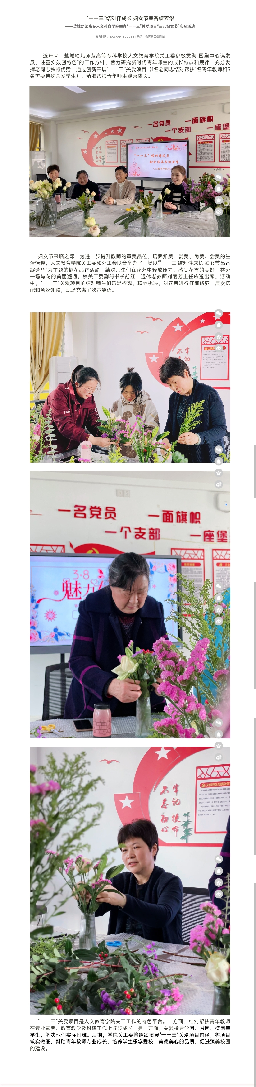 “一一三”结对伴成长 妇女节品香绽芳华 ——盐城幼师高专人文教育学院举办“一一三”关爱项目“三八妇女节...