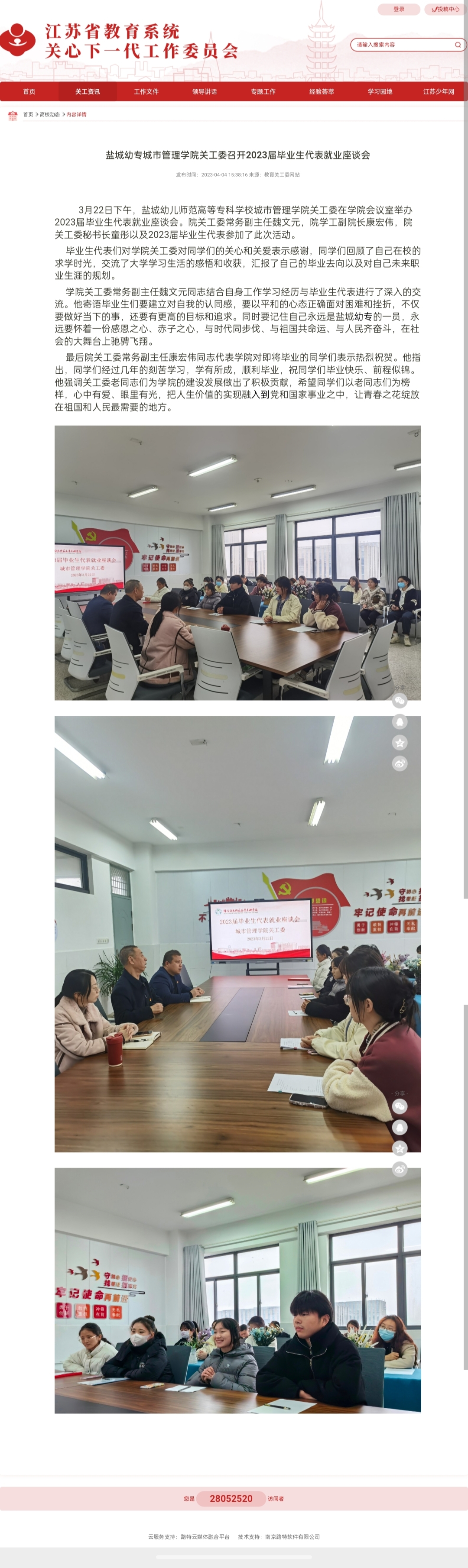 省教育关工委网站报道我校城市管理学院关工委召开2023届毕业生代表就业座谈会