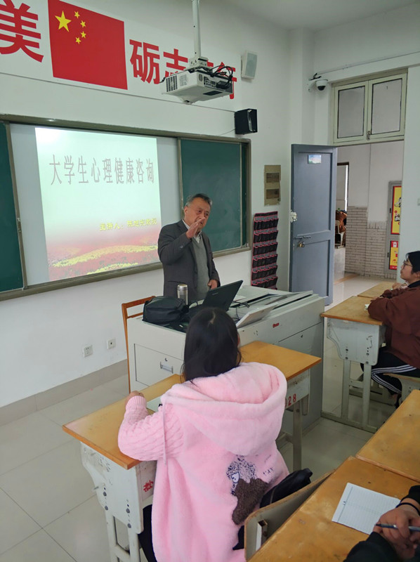 为进一步了解大学生心理问题、心理压力以及学习和生活现状,指导他们树立正确的人生目标,2018年4月16日下午二节课下,外语系特别邀请了原盐城幼儿高等师范专科学校大专部主任、校心理健康教育与咨询专家------陈旭东教授,来我系进行了题为“大学生心理健康咨询”的讲座。