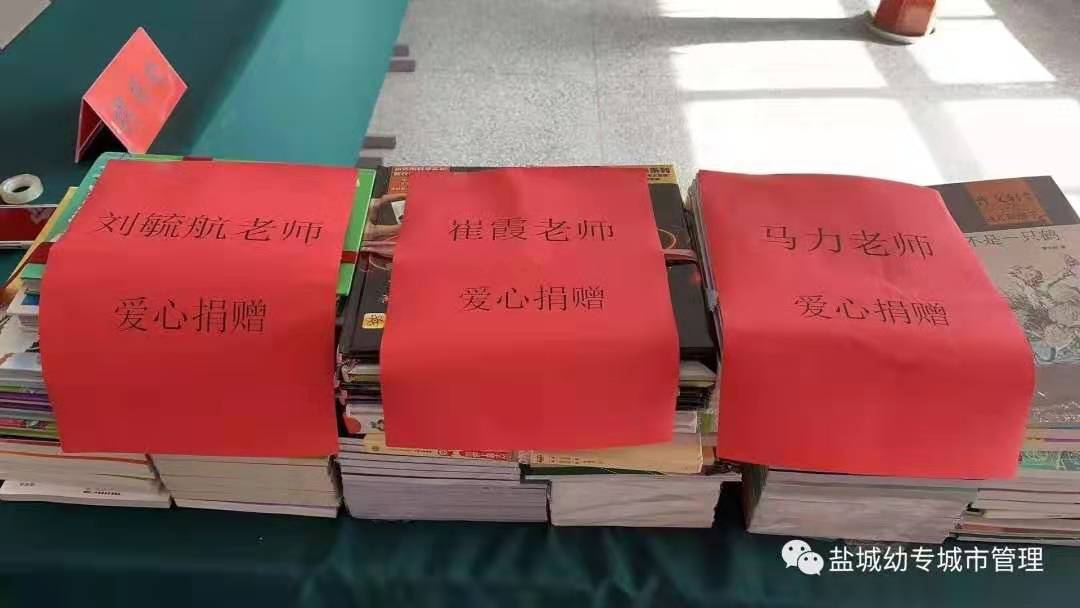 2019年11月,盐城幼专城市管理学院党总支李宇健书记接到校友、原盐都区文广局邵秀华局长一则求赠小学生课外读物的消息,刚退二线的邵局长自费义务到贵州省贵阳市清镇市红枫湖镇品桥小学支教,在支教过程中,了解到该校200多名学生需要社会力量支援建设一个图书室,孩子们想读课外图书。
