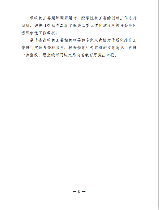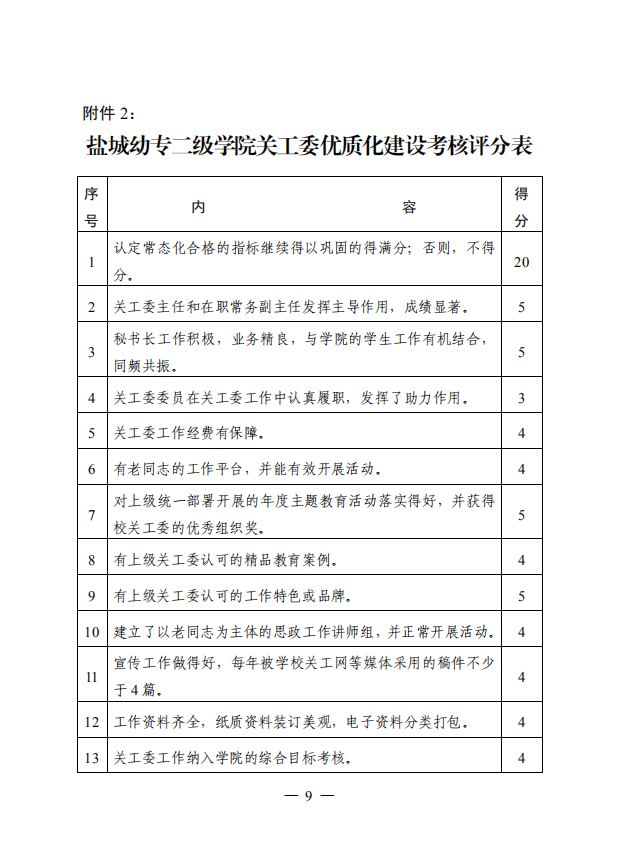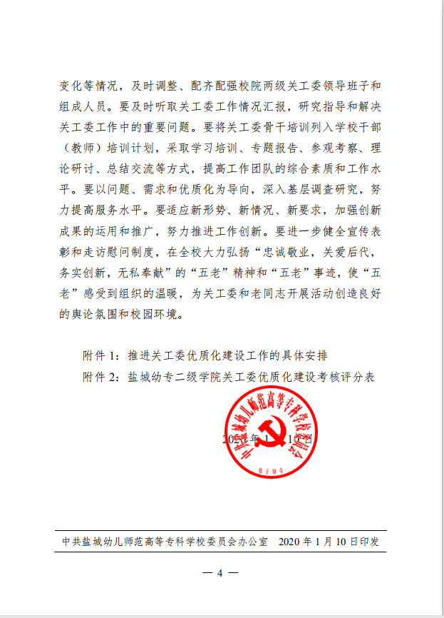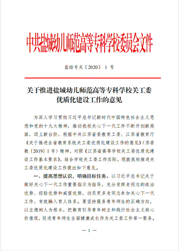 关于推进盐城幼儿师范高等专科学校关工委 优质化建设工作的意见