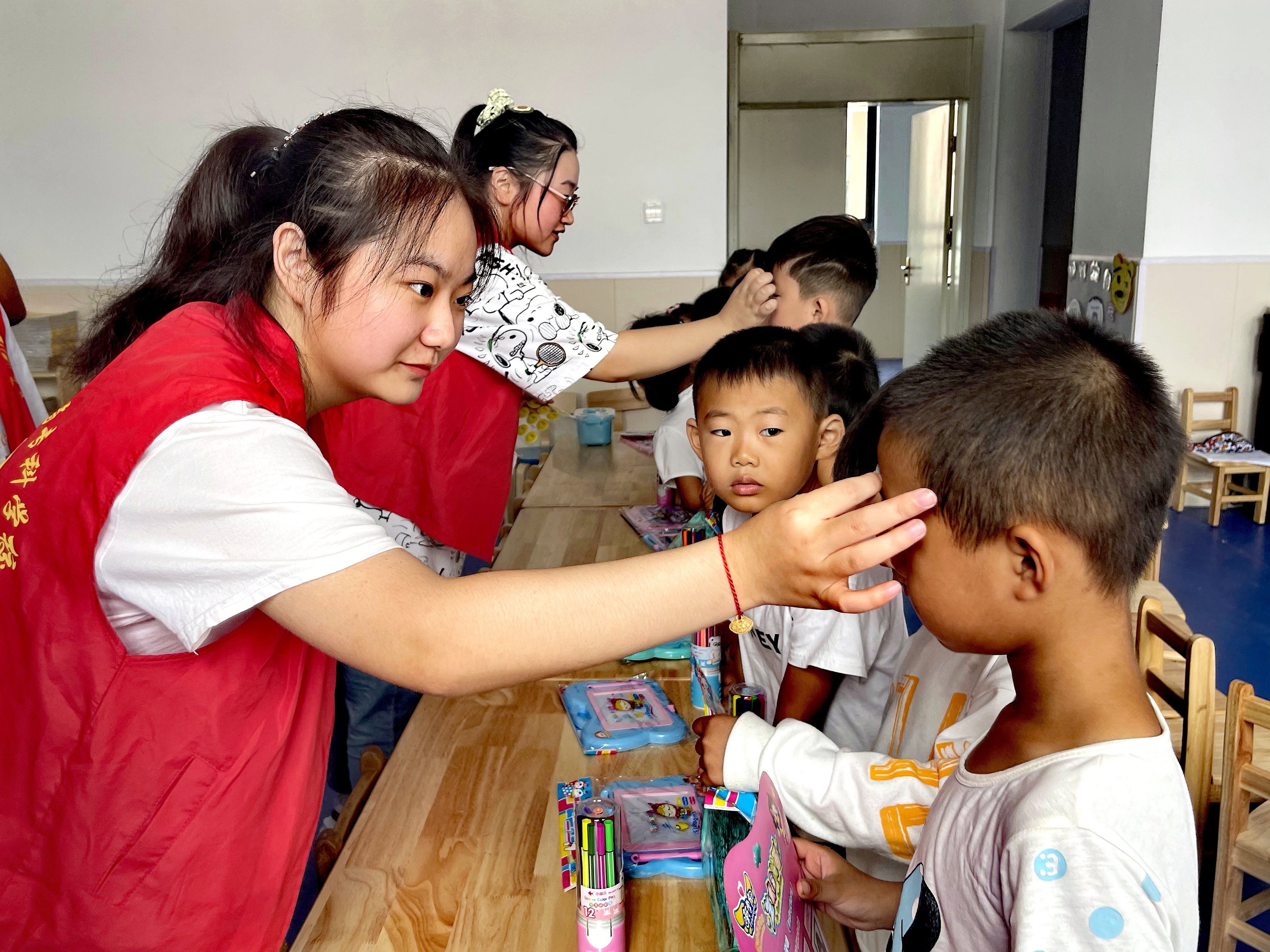 志愿者们在该部关工委刘秘书长的带领下,驱车数百里,先后走进盐城滨海港经济区中心幼儿园、滨海港镇中心幼儿园等单位以及留守儿童家庭开展为孩子们讲故事、教唱歌、画画、做游戏等活动,使孩子们增添了童趣,开阔了视野。手势舞《你笑起来真好看》,博得孩子们的青睐,他们高兴得跟着志愿者们一起唱歌,一起做手势,气氛十分融洽。随后志愿者还为小朋友们送上纪念品,虽然这些小礼物微不足道,但孩子们却韭常喜爱。志愿者们还走进留守儿童家中,为孩子们送去图书、学习用具等,并为他们进行学习辅导。乐乐(化名)父亲残疾,母亲智力有障碍,只能靠年迈的奶奶抚养她,家庭十分贫困,是村里的建档低保户。志愿者们一方面对他们进行安慰,相信日子会一天一天好起来,另一方面大家表示要尽力相助,确保孩子健康成长,使他们感受到社会的温暖。