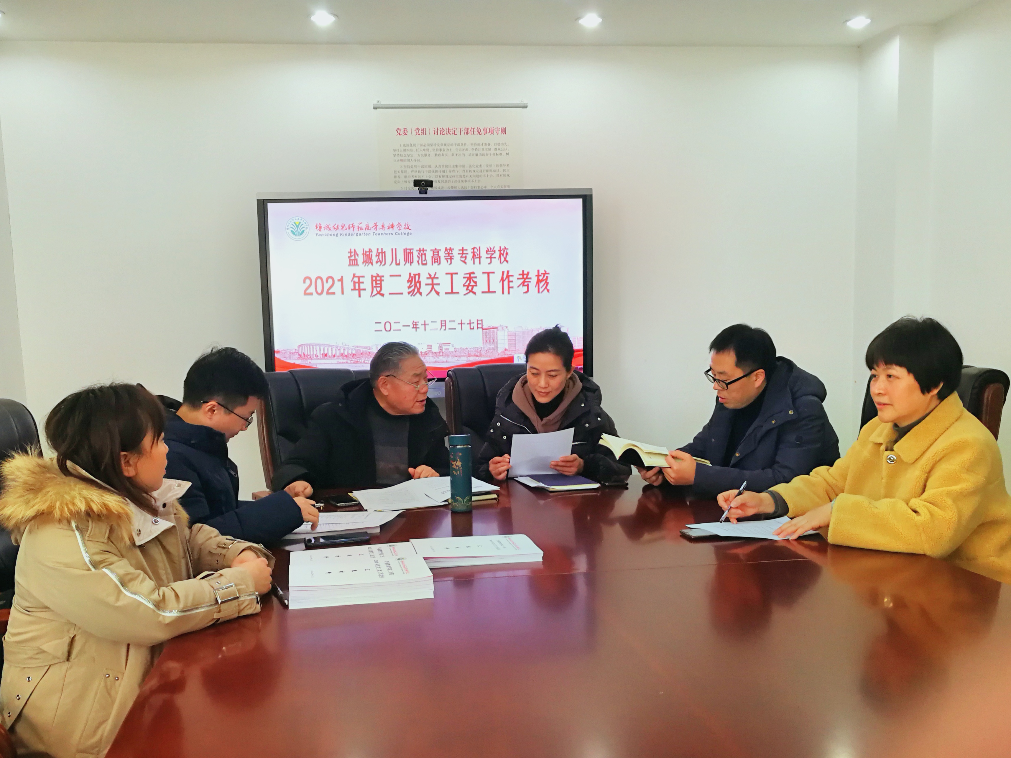 首先各二级学院关工委根据月初召开的关工委年度工作考核会议精神和要求,对照《盐城幼专二级学院关工委工作考核细则》,分别从组织领导、常规工作、关工活动、特色与创新等几个方面作了汇报。接着各二级学院对2021年度工作进行自我评分。然后考核组分别查看、核对各学院工作材料,遇有疑问情况,有关单位负责人现场进行答疑。最后,考核组根据各单位平时工作情况,现场进行综合评议,形成考核得分,并报校考核办纳入学校2021年目标绩效考核。