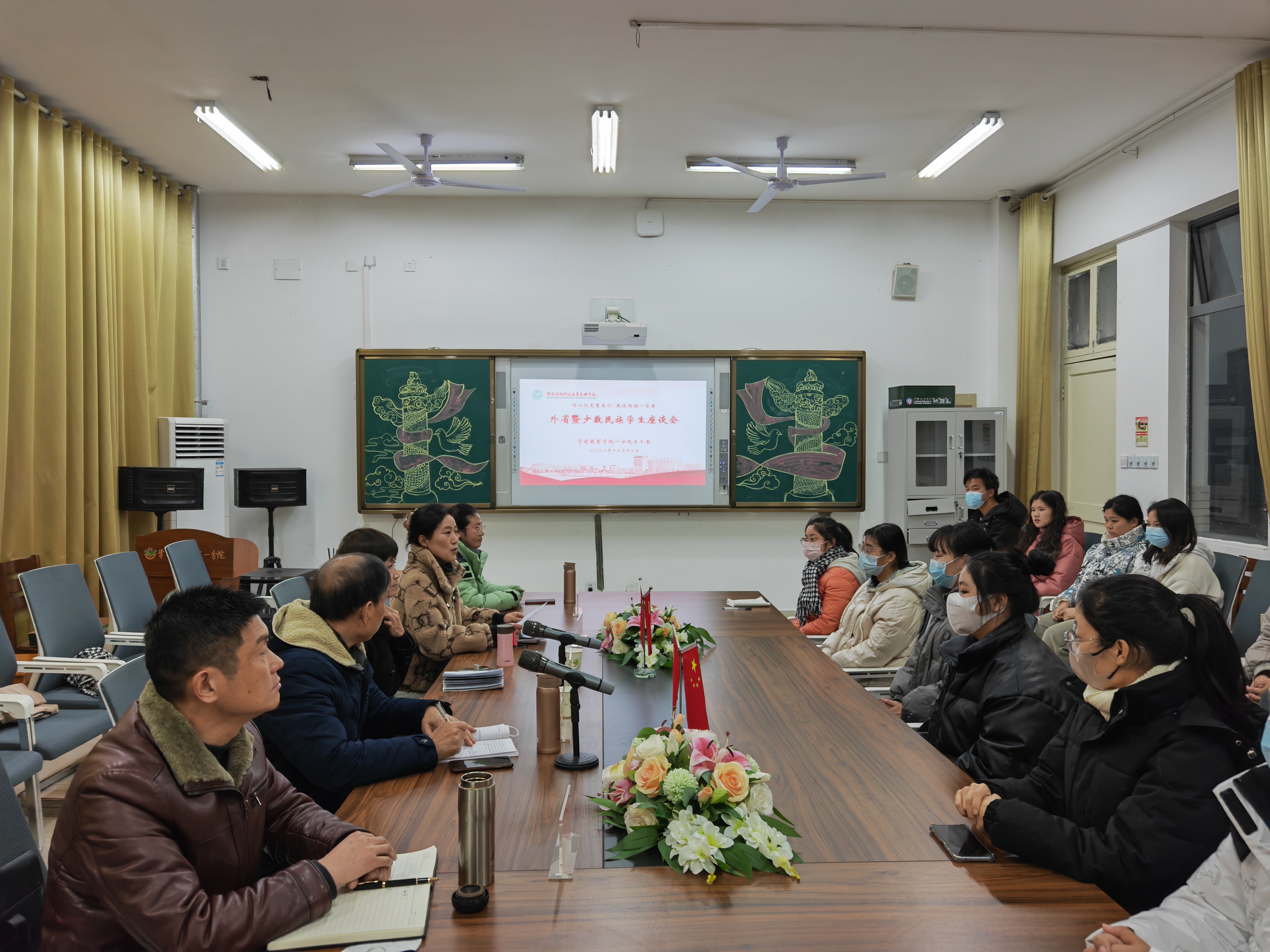为深入学习贯彻落实党的二十大精神,加强学院与外省及少数民族学生间的沟通交流,铸牢中华民族共同体意识。12月12日下午,学前教育学院一分院关工委在党员活动室召开“同心向党聚共识 民族团结一家亲”外省暨少数民族学生座谈会。校关工委秘书长徐东霞,校关工委副秘书长、院关工委常务副主任张纲,院党总支书记、关工委主任陈勇,院党总支副书记、关工委常务副主任徐莉以及20名学生代表等参加会议。