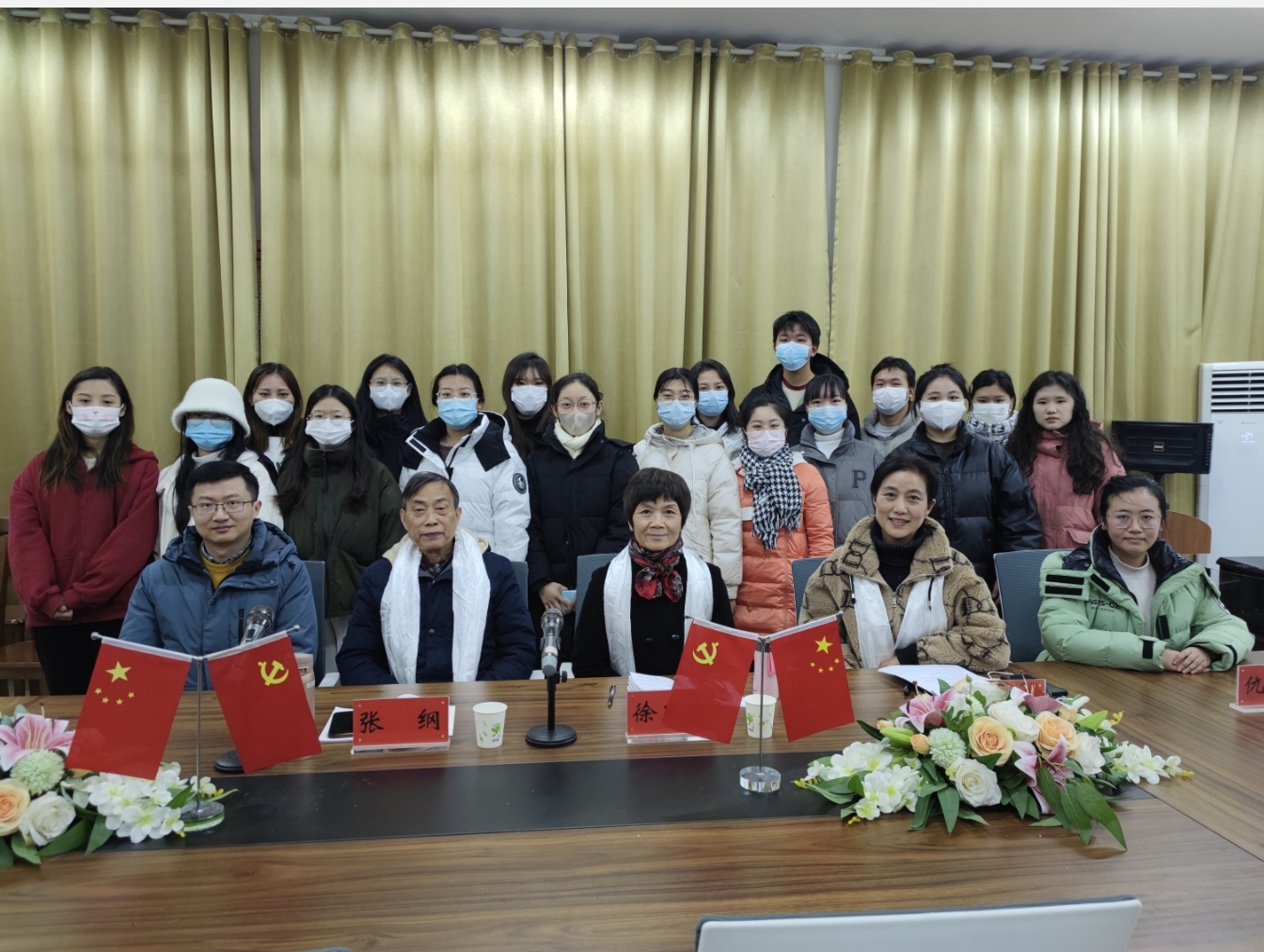 座谈会结束后,三名藏族学生代表向老同志献哈达,对老同志一直以来关爱学院青年表达了最诚挚的谢意。