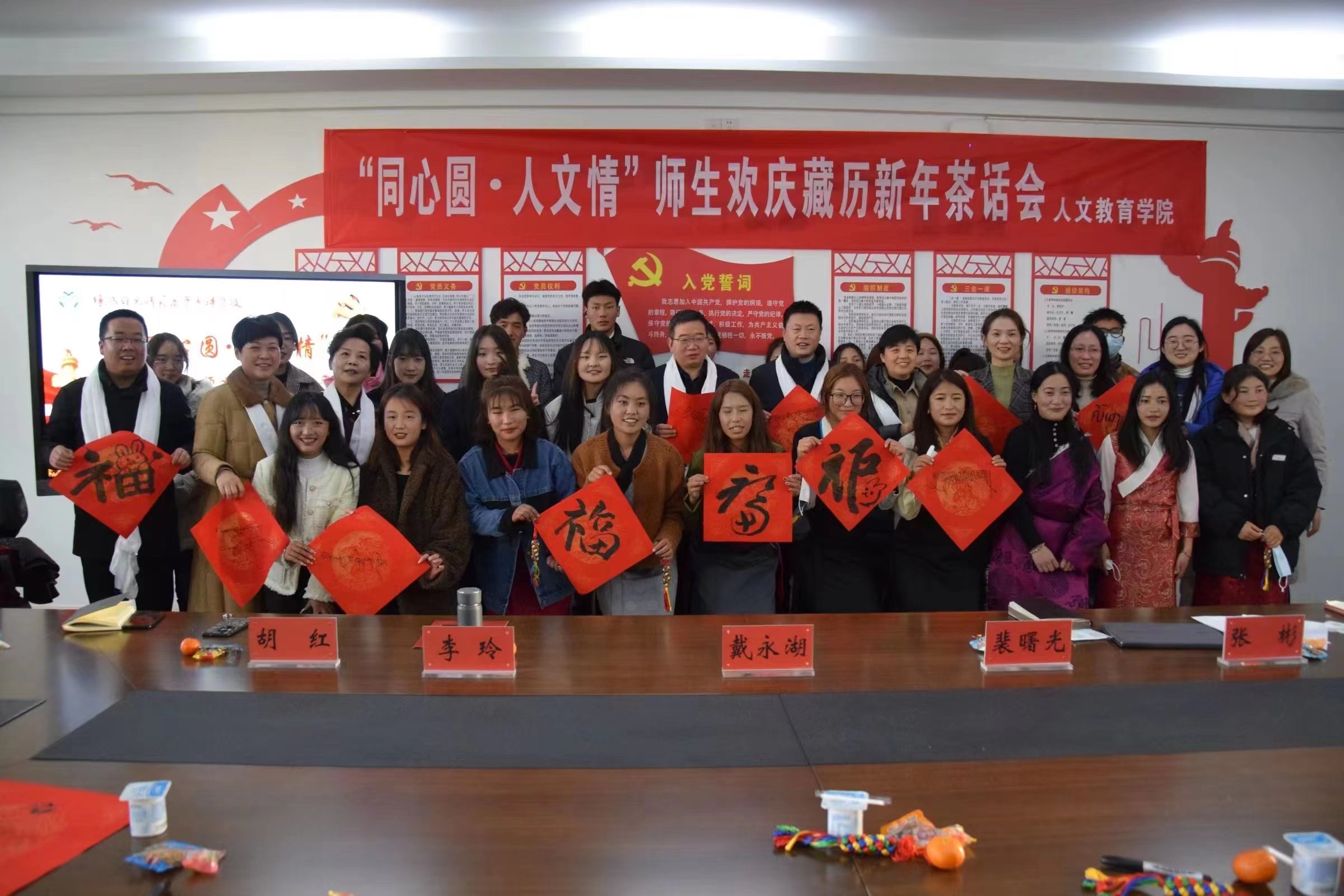 2月21日是藏历水兔新年,为深化民族团结进步教育,铸牢中华民族共同体意识,让藏族学生在他乡欢度新年,感受家的温暖,人文教育学院关工委特举办“同心圆•人文情”欢庆藏历新年联欢活动。副校长戴永湖、校党委委员、统战部部长裴曙光、校关工委副秘书长胡红、人文教育学院关工委常务副主任李玲应邀出席,人文教育学院领导、辅导员老师及全体西藏学生、汉族学生代表参加,人文教育学院党总支书记、关工委主任张彬主持本场活动。