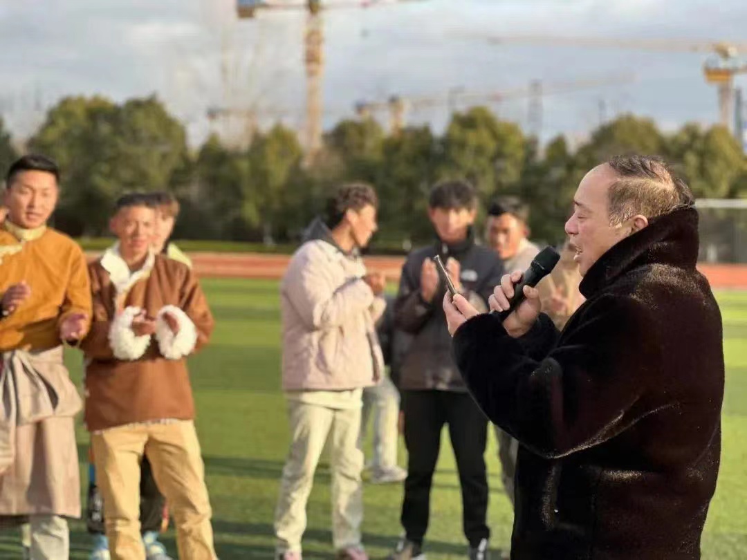 会后,藏族学生们来到操场围坐在一起,载歌载舞,彼此送上新年的祝福:“罗萨,扎西德勒!”。本次联欢以歌舞为主,藏族同学能歌善舞、友好纯洁的天性表现的淋漓尽致。钱达友院长也为同学们带来了节日的慰问,他表示,重大节日等活动中,尊重少数民族学生的风俗习惯,营造和谐温暖、团结友爱的校园氛围。藏籍学子虽然无法与远在万里的家人一起过节,但是,在学院这个大家庭中,与关心关爱他们的老师、同学们在一起,一定会感受到大家庭的温暖、祥和幸福!最后学院的领导、辅导员与藏族同学合影留念,大家纷纷点赞活动圆满成功。本次活动充分展现了我校绚丽多彩的校园文化及民族和谐一家的良好风貌。