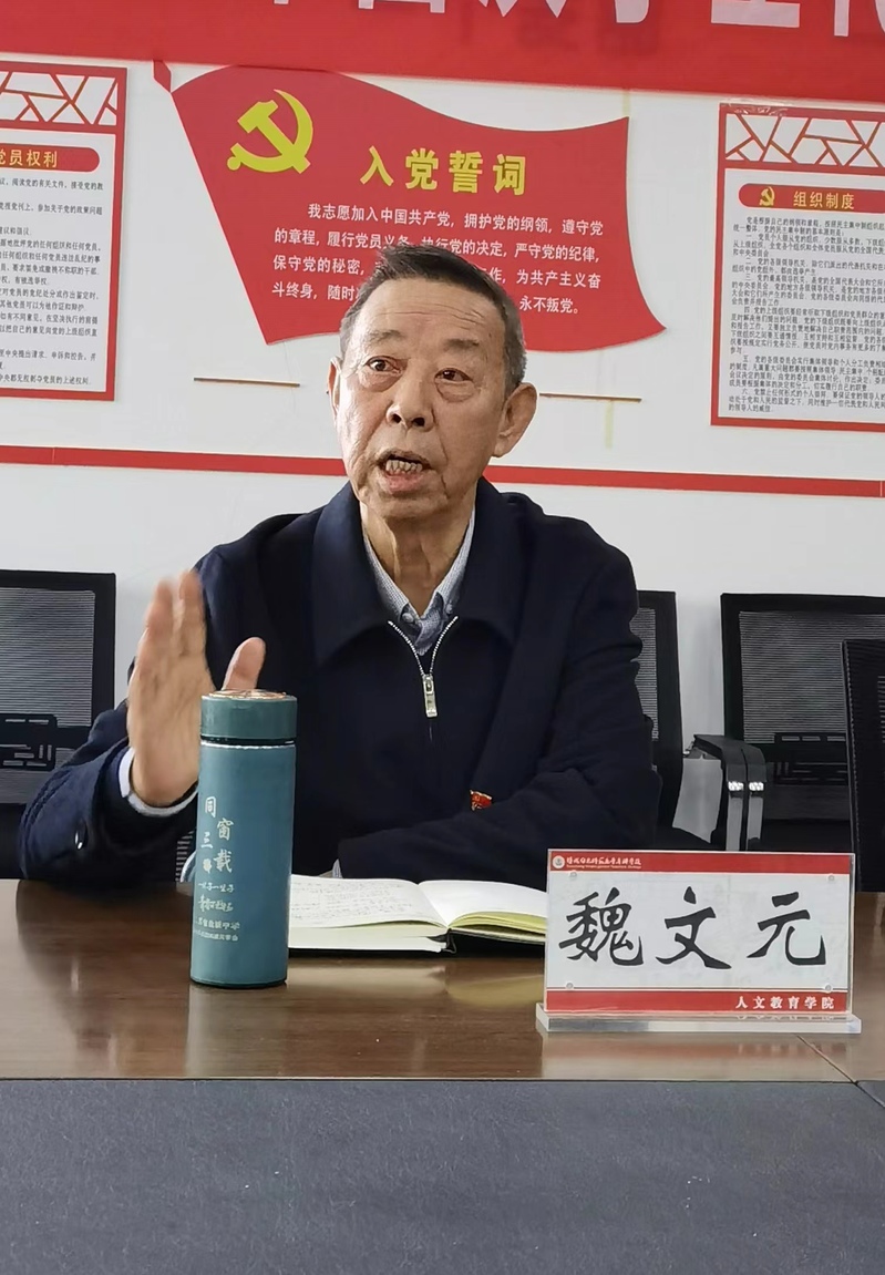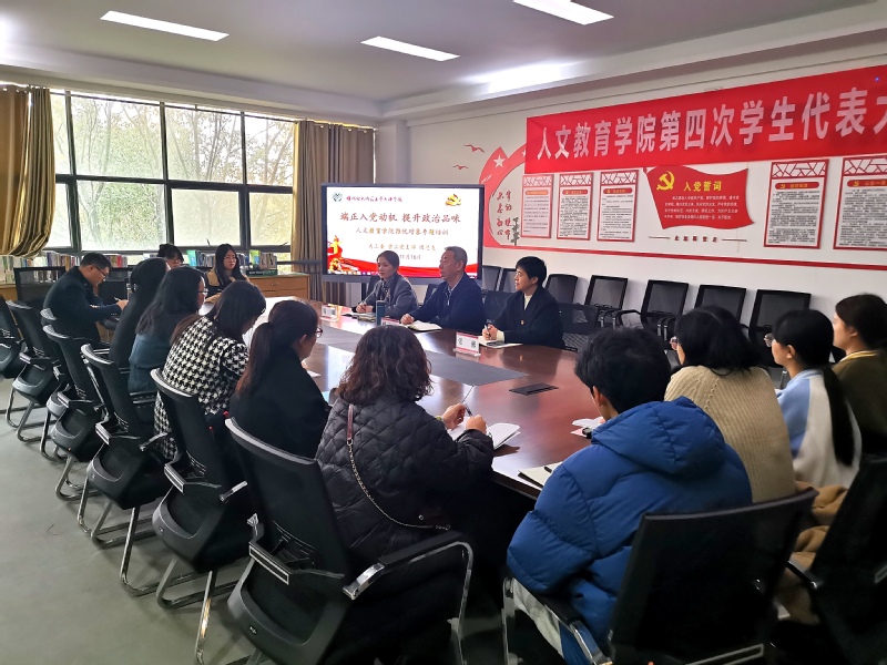 为全面贯彻习近平新时代中国特色社会主义思想,深入学习宣传贯彻党的二十大精神,加强青年学生的思想建设,扎实做好优秀共青团员推优入党工作,11月16日下午,人文教育学院关工委联合学工党支部、团总支开展入党推优对象专题培训会。本次会议特邀老共产党员魏文元同志为本期入党推优对象讲授题为《端正入党动机 提升政治品味》的专题党课。学院党总支书记张彬、学工党支部书记、关工委常务副主任周麟、团总支书记张芸、学工党支部全体党员同志及推优对象候选人现场聆听。