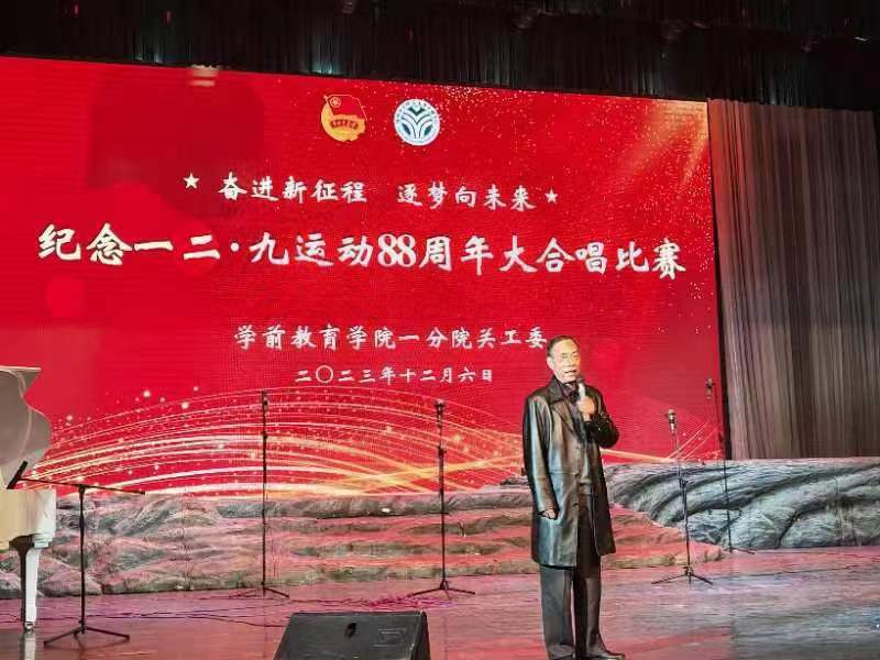 为纪念“一二·九”学生爱国运动88周年,激发新时代大学生爱党爱国情怀,培养广大青年践行社会主义核心价值观,丰富校园文化生活,12月6日下午,学前教育学院一分院关工委在学校鲁艺剧场成功举办“奋进新征程 筑梦向未来”纪念一二·九运动88周年大合唱比赛。