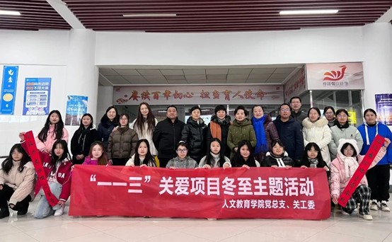 12月21日下午,人文教育学院在“一站式”学生社区润心书屋开展“一一三”关爱项目冬至主题活动。校关工委胡红主任、刘菊芳主任、我院关工委常务副主任李玲教授及学院党政领导同少数民族学生代表共同参加活动。