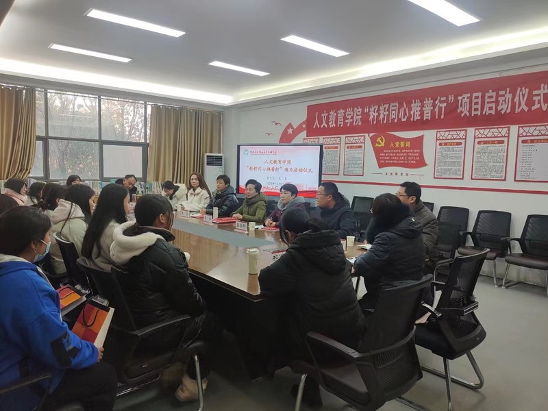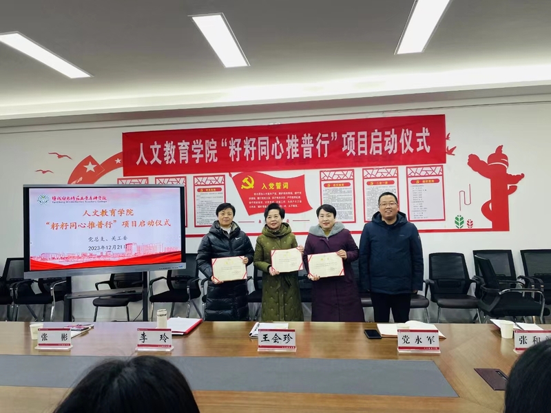 “籽籽同心推普行”项目得到了学校党委统战部、关工委及学院党政的大力支持,聘请关工委老教授、党内外优秀教师等国家级、省级普通话测试员担任关爱项目的语言指导老师。12月21日下午,学院在海洋路校区3号教学楼党员活动室举办项目的启动仪式。会上,人文教育学院党永军院长为语言指导老师颁发聘书。学院关工委常务副主任、国家级普通话测试员、江苏省语委专家库成员李玲教授作代表发言。