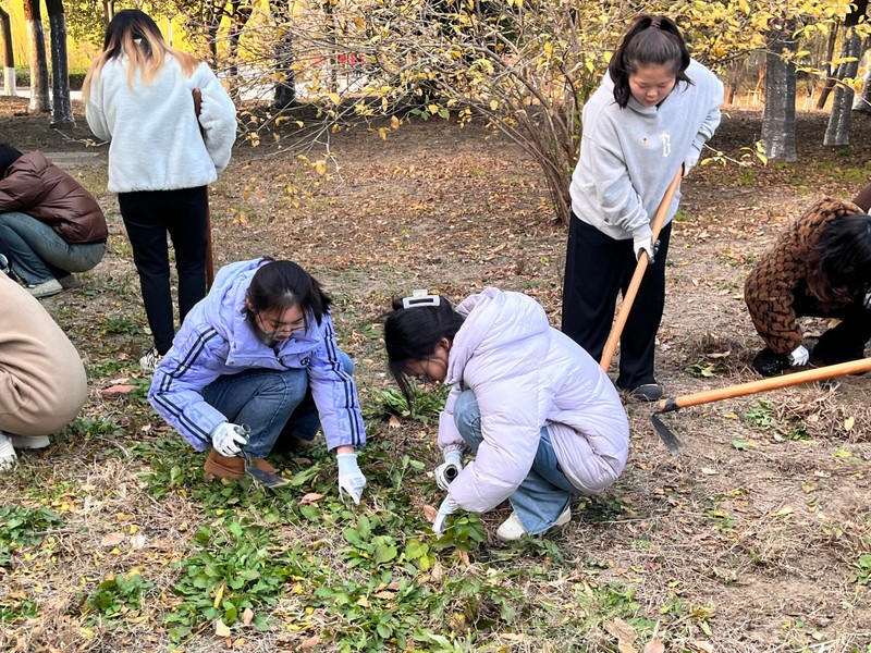 同学们纷纷表示,从刘主任的真情分享中收获颇丰。大家使用铁锹、锄头、铲子等工具,清除杂草。刘主任身体力行,耐心讲解除草工具的使用方法,让同学们通过合理正确的方式积极躬耕劳作。学工党支部书记车鹏程和团总支书记刘勇也亲自加入劳动中,和同学们一起出力流汗,快乐劳动。经过一下午的齐心协力后,原本杂草丛生的绿化带焕然一新,大家成就感满满,露出了欣慰的笑容!