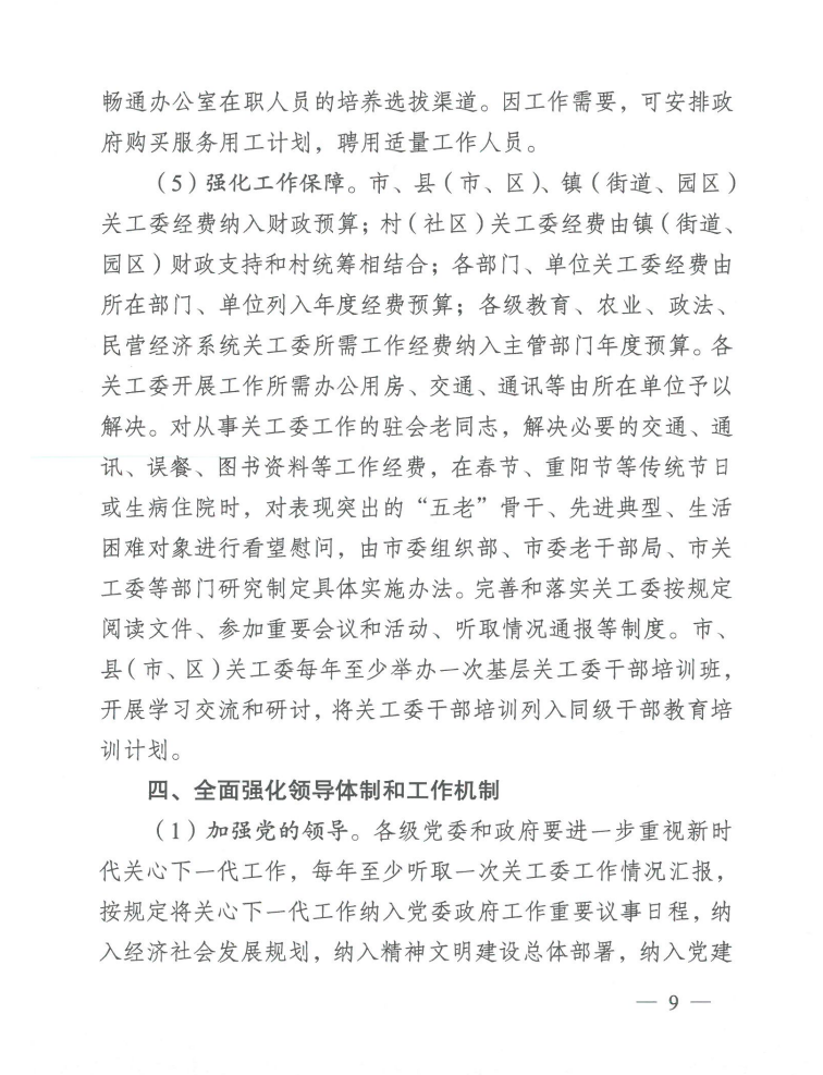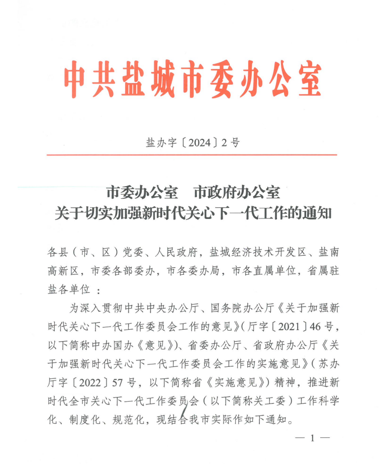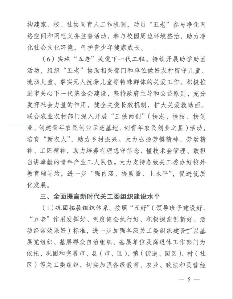 市委办公室 市政府办公室关于切实加强新时代关心下一代工作的通知