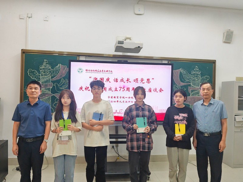 为营造喜庆热烈、文明祥和的国庆氛围,积极引导2024级新生坚定理想信念、厚植爱国情怀,指导和帮助新生完成角色转变,9月27日下午,学前教育学院一分院在党员活动室举办“迎国庆 话成长 颂党恩”庆祝新中国成立75周年师生座谈会。学院关工委主任陈勇、关工委常务副主任张纲、于飞、关工委秘书长庄海龙、专职辅导员马圆圆,老生代表以及20名新生代表参加座谈。