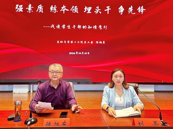 为进一步提高学院学生干部管理水平,充分发挥他们的桥梁纽带作用和模范带头作用,10月9日下午,盐城幼儿师范学前教育学院二分院关工委常务副主任陈旭东同志在南校区行政楼三楼报告厅为学生干部开展了“强素质、练本领、埋头苦干争先锋”的专题讲座。会议由学院党总支副书记、副院长、院关工委常务副主任刘蕾同志主持,院学生会全体成员、各班班长和团支书参加了会议。