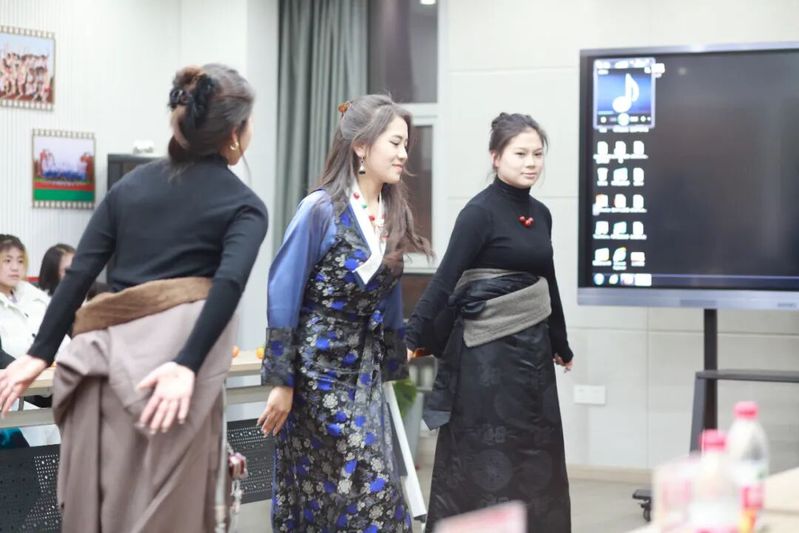 随后,藏族学子们带来了精彩纷呈的节目表演。欢快的锅庄舞和精美的藏服,无不展现着藏族文化的独特魅力,也传递着他们对新年的美好期盼。
