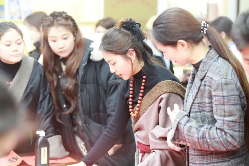 笔墨传情,共贺新年。藏族、汉族师生共同书写“扎西德勒”“福”字,用笔墨传递着对新年的美好祝福,也书写着民族团结的动人篇章。