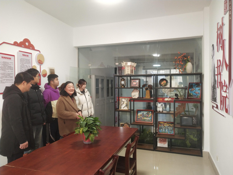 随后,大家移步至心理文化展示区。展架上整齐陈列的手作摆件、创意装饰等作品,每一件都承载着同学们的情绪表达与奇思妙想。刘菊芳主任拿起一件精致的手作作品细细端详,向在场师生分享感悟:“这些看似小巧的物件不只是简单的装饰,更是同学们将抽象情绪转化为具体形态的巧妙表达。心理健康教育,正是要为这种‘看不见的情绪’搭建起可安放、可倾诉的载体。”